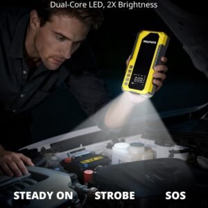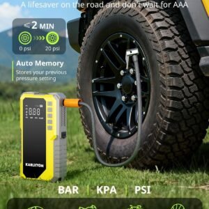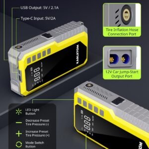 30 reviews for Portable Car Jump Starter with Air Compressor, 5000A 12V Gasoline & Diesel Engine Battery Enhancer, Fast Charging USB Output Jump Box for Car Battery